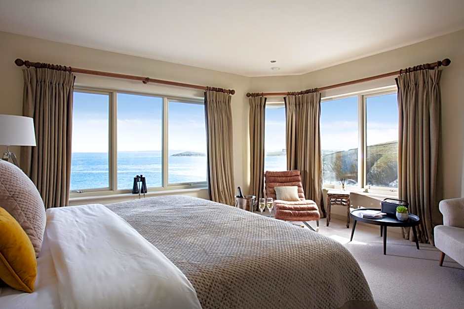 With views of the Pentire Headland, a modern walk-in shower room, and a large super king-size bed. Also features DAB radio/Bluetooth speakers, a flat-screen TV with on-demand movies, and free WiFi.