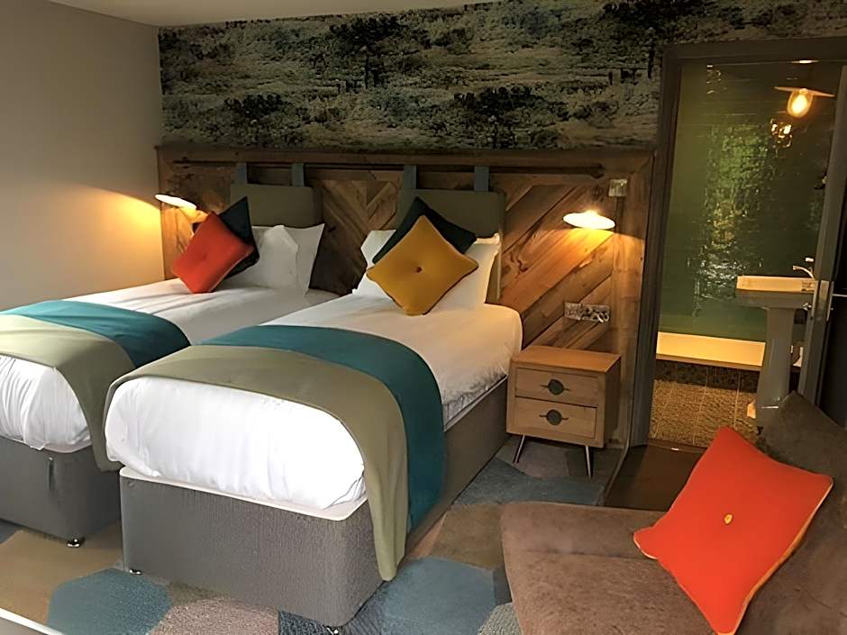 My goodness what a little gem of a find for our journey to Plymouth Port with our dog. From the moment we entered to be so professionally, courteously and kindly dealt with by ‘The Twins,’ we knew we had chosen well. The room was fabulous, with a huge bed and such a choice of refreshments. The bathroom had lots of fluffy towels and really upmarket toiletries. Our evening meal with the dog was exceptional. Then a walk around the grounds and adjoining, rather upmarket caravan site, so nice for the dog. Breakfast was just what we wanted, with a pot of tea and really good eggs. Immediately booked for our next trip.