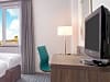 As with another Leonardo hotel, the bathroom fan is on ALL the time. They need to sync it with the lights and a timer. Also the room I had was at the front and the window didn't stop much of the traffic noise due to it not being able to close properly, despite me being on the top floor! (If I pushed on it, the noise died down) Earplugs are a must. The food available was just to expensive to eat there in the evening.