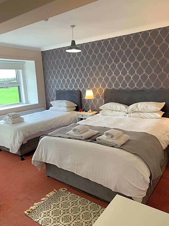 This Triple Room has one king size bed and one single bed, and views of the garden and countryside. The room also has a TV, hairdryer and tea/coffee-making facilities. This room has an ensuite bath and rain shower and a cot is available. Children are classified under 16 years old.