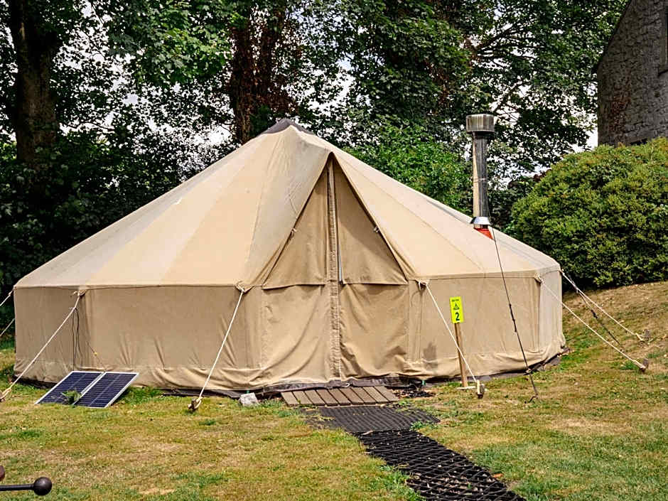 This tent features a fireplace. The tent includes a shared bathroom fitted with a shower. The tent has garden views. The unit has 1 bed and 3 futons.