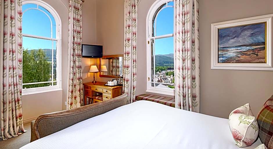 Very comfortable tastefully decorated and furnished hotel room very quiet despite being above main drawing room could not hear a thing stunning views across top of town to hills beyond with binoculars to scan the view. Very comfortable bed room spotlessly clean. Even proper instructions on how to use coffee machine. Breakfast excellent with numerous choices. Staff genuinely friendly and discretely efficient. Good location up the hill from the town centre so a short pleasant walk through delightful highland Victorian architecture. One of Scotland’s prettiest towns so well worth a visit. Hotel has plenty of safe parking not that Pitlochry has many crime anyway.