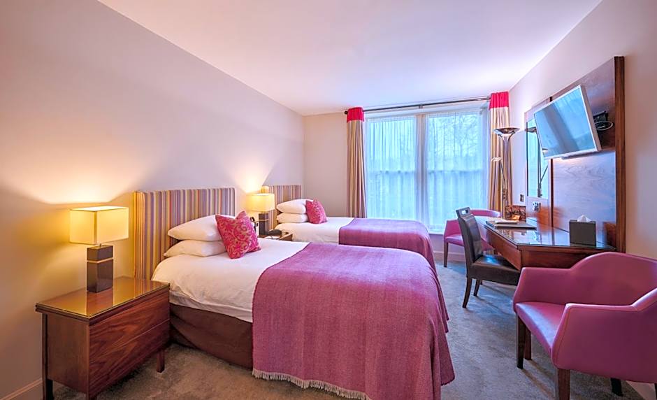 We stayed here as our friends had a wedding at Rossie on the Glen. The hotel is a beautiful old building which is modern inside and only a 5 minute walk from the train station and centre of town. We had a big double room with a massive comfortable bed, built in wardrobe, dressing table and big shower room. All very clean. There were lots of mirrors which was a bonus getting ready for the wedding, especially the mirror at the window of the shower room. The full Scottish breakfast was delicious. All the staff were very friendly and accommodating. We would definitely recommend the hotel!