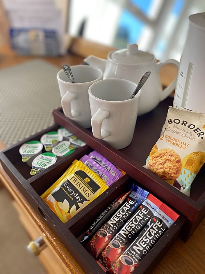 Friendly welcome. Very clean in the public areas and the bedroom. Very comfy bed and good sized room and bathroom. Good quality coffee machine in the room with a range of coffee pods. Simple check-in and check-out. Biker friendly. I was able to park behind the hotel on hard-standing which was safer for my bike. The free self-service breakfast provided a great variety of choice of items as well as tea, coffee, fruit juice and water which gave us a very good start to the day.