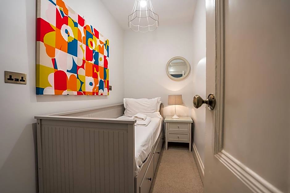 Captain Scott Two Bedroom Penthouse Apartment with Sea View This fourth-floor duplex apartment offers spectacular sea views. The large lounge has a double sofa, TV and dining area. There is a fully equipped kitchen/diner with a dishwasher and washer/dryer. There is a double bedroom with an private bathroom with a bath and separate shower. On the second floor up a flight of stairs is a roomy attic bedroom, with three single beds and a bath and basin. Please note that this apartment does not allow pets.