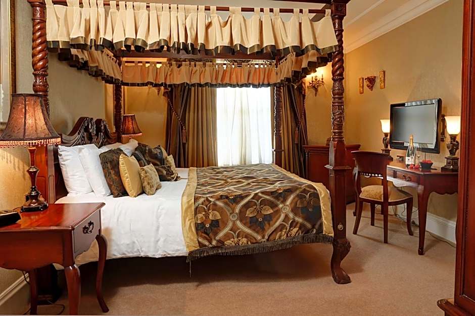 Features in this room include a king size modern four poster bed, 32-inch flatscreen TV with Freeview, freestanding antique roll top bath in the bedroom and tea/coffee making facilities. The private bathroom comes with a walk in shower and complimentary toiletries. Bottled water, iron and ironing board and a hairdryer are also provided.