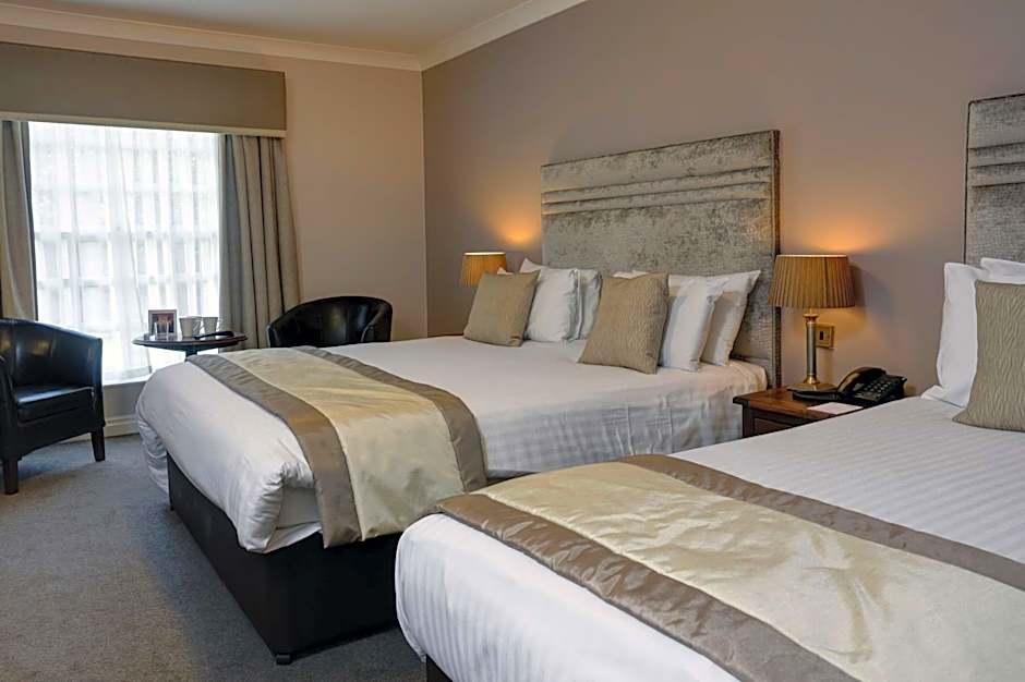 Features in the room include a king size double bed and single bed or sofa bed (extra camp beds or cots can be accommodated), 32-inch flatscreen TV with Freeview and tea/coffee making facilities. An private bathroom comes with a bath and overhead shower and complimentary toiletries. An iron and ironing board, hairdryer, complimentary WiFi and central heating are also provided.