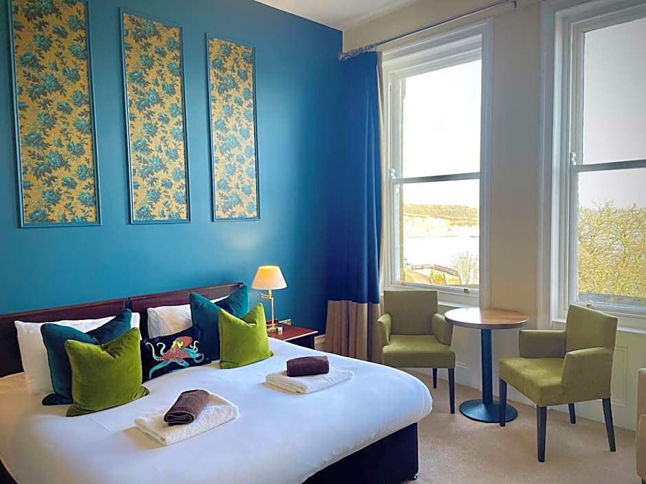 Third Floor Sea-view room with a super king-size bed or 2 Twin Single beds. Default room setup is King unless stated. There is an private bathroom with either a bath with a shower overhead, or walk-in shower.
