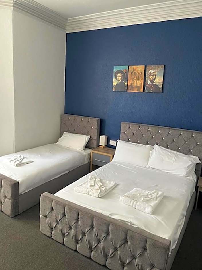 Booked this hotel quite last minute only paid £67 for a family room for myself, my partner and 2 children. Read online reviews after booking and they were mainly negative so didn’t have high hopes. When we got there we were greeted by a lovely man on reception very friendly and helpful. The hotel was clean and nicely decorated inside. Our room had a double bed and 2 single beds for the children en suite bathroom really clean all we needed was a bed for the night and for the price you can’t go wrong TV that connected to Netflix/disney plus for the kids within walking distance of Skegness pier.