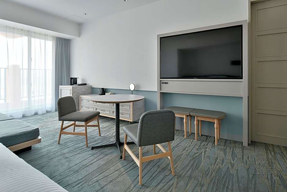 1 King Bed Grand includes a double bed 131-150 width plus desk and satellite tv .