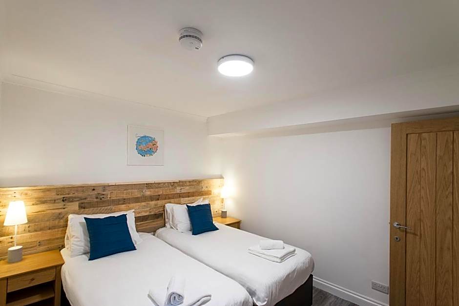 Hunters apartment is located 1312 feet from the main hotel building. It is split across two floors and features a double room, a double or twin room with a zip & link bed, and a bunk room. It also has a bathroom, an equipped kitchenette and dining area on the ground floor. Upstairs, it features a living room. The kitchenette area comes equipped with fridge, microwave, oven (no hob), toaster and kettle. The property is accessible via a communal patio area and has car parking nearby. Check in for hotel apartments is from 16:00