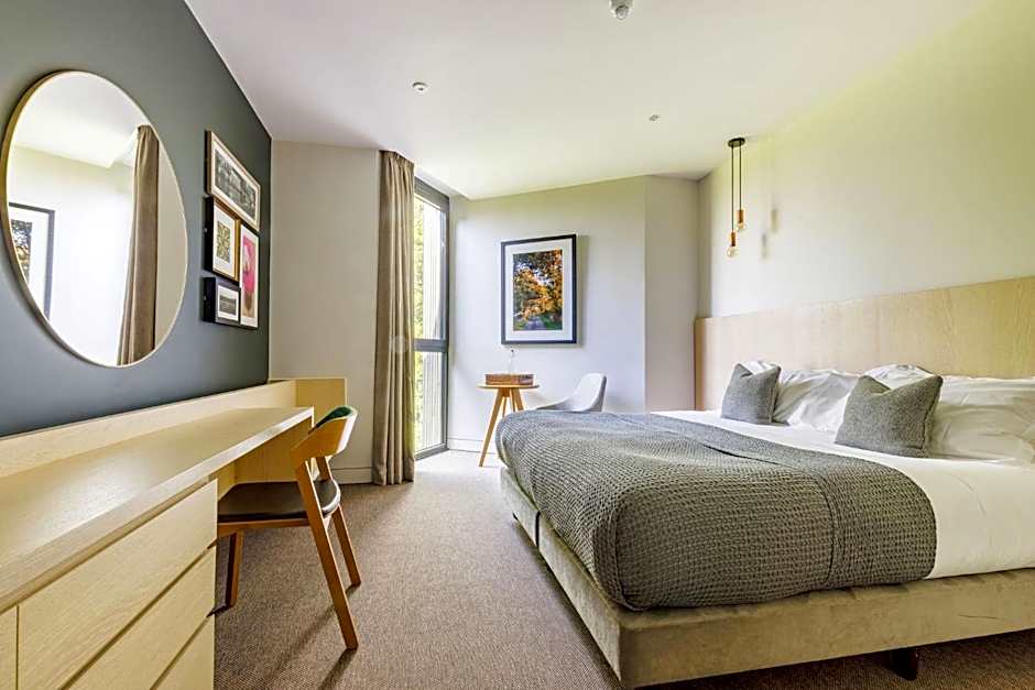 This double room has a garden view, electric kettle and seating area. Overlooking the rolling Cotswold landscape, our three Main Lodge Superior Rooms offer floor to ceiling windows which offer beautiful views of the golf course. This room is NOT PET FRIENDLY. Rooms can be configured with a king size or two single bed crisp white linen. Each room offers tea and coffee making facilities complemented with homemade biscuits. Towels and robes are included, and the room is serviced daily. Travel cots are available on request when booking (subject to availability), alongside a nappy bin, changing mat and towel.