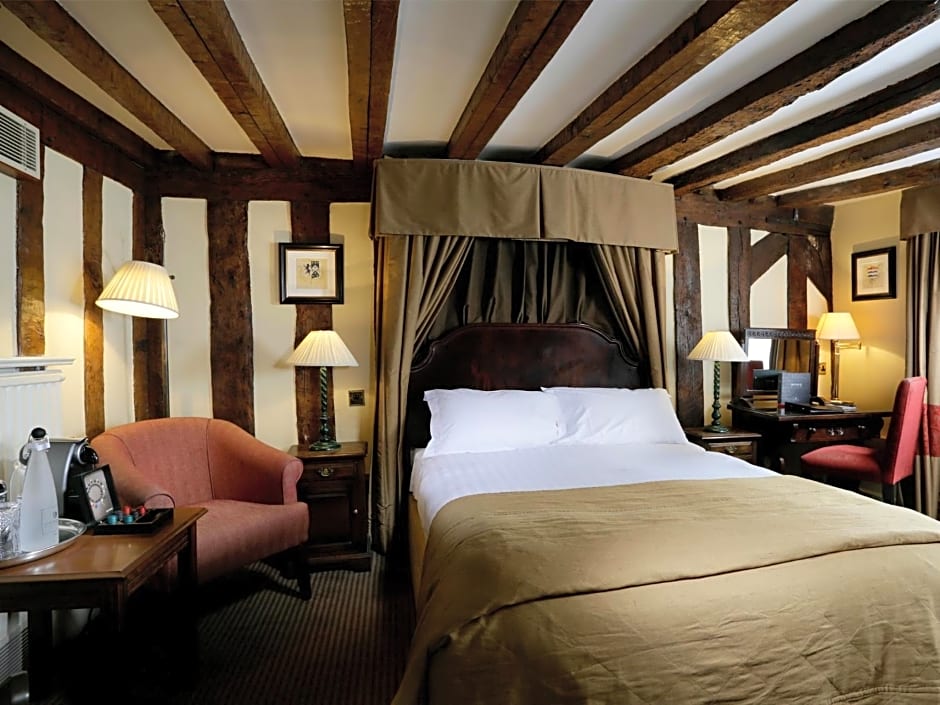 Located at the center of the Manor House, the Feature Four Poster bedroom has views overlooking both the front of the hotel and the rear gardens. You'll have your own entrance lobby and living room with sofa bed and chairs. The bedroom features a four poster double bed with vaulted ceiling. This room can accommodate up to two adults and two children.