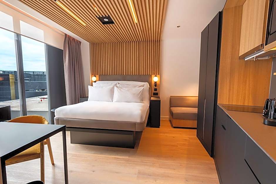 Inside, the stay feels modern and practical, with spaces designed for easy living. In-room perks include a kitchenette, free wifi, air conditioning, and free toiletries, while a 24-hour front desk and an elevator keep everyday moments smooth. The handy 104 Broadway address anchors a Stratford stay close to the city’s bustle.