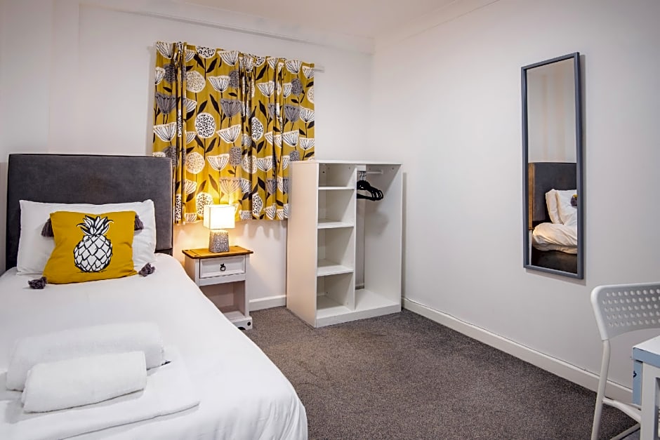 Rooms at the Royal Ashton Townhouse in Taunton vary from single occupancy economy rooms to spacious two-bedroom apartments. Occupancy ranges from single to up to five adults per room. Bed sizes include Twin, Double, King size, and Sofa Bed options, catering to different guest preferences and needs. Smoking is not allowed in any of the rooms.