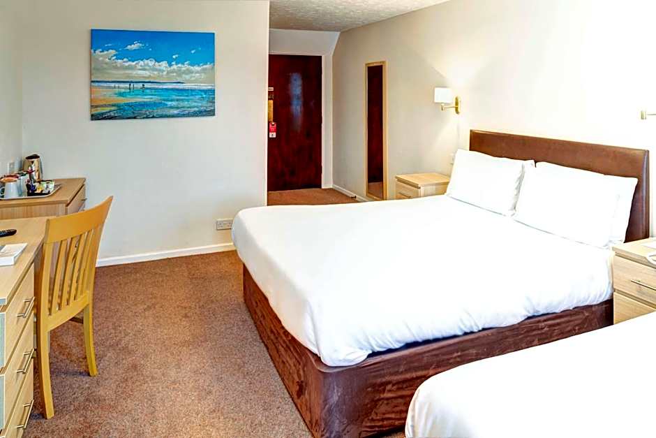 Excellent staff at reception (Aimee) and all the staff were very friendly and helpful. The room was spotlessly clean the bed was really comfy. There was a coffee machine and water in the fridge, We had a slight issue with the drain in the shower but when mentioned at reception the maintenance team were immediately on the case. Could not expect better service. We booked an executive room / 293 which was really large and the bathroom was also very spacious with a great shower and good sized fluffy towels. There is no air con but there was a fan in the room which was very efficient The hotel is around a 20 minute walk to the beach and a lovely harbour and there is a bus stop over the road We had a carvery in the restaurant in the evening which was very good We would definately stay there again if in the area
