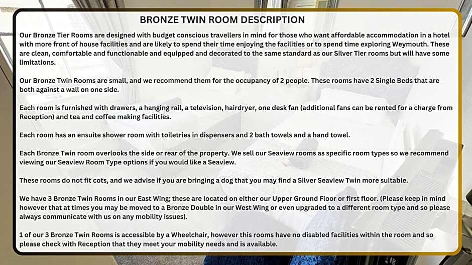 The Jubilee Hotel offers a variety of room types including a Standard Double Room (accommodates 2 adults, 1 children) and a Seaview Family of 3 (accommodates 3 adults, 2 children). The rooms range in size from 129 sqft to 215 sqft. Smoking is not allowed in any of the rooms. The beds range from single to double, with some rooms also offering sofa beds or bunk beds.