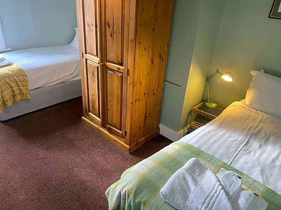 A bright and airy Twin Room with a separate private bathroom across the landing, Also features satellite TV, free Wi-Fi, and free tea and coffee.