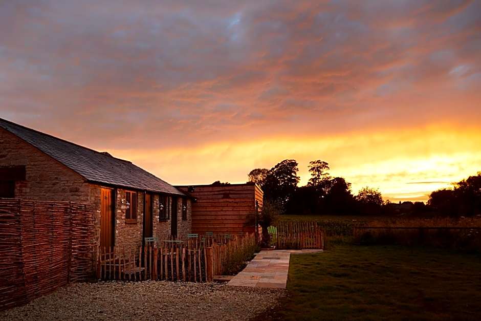 The spacious Barn Suite is located in the converted farm outbuildings and features an original high pitched ceiling, wooden floorboards, a bespoke four-poster bed, a spacious bathroom with free-standing bathtub and rainfall shower, a private terrace and a seating area with a mini-bar cabinet and a log burner.