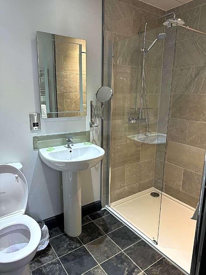 Overall great experience! We were staying for a festival nearby, so the location was fab and just across from the station! It was a twin room with a shared bathroom, was exactly as advertised. They mentioned they would've offered us a double as we were a couple but they were no doubles left. This was lovely of them anyways and we didn't mind the twin, perfect sized room for us. The bathroom was just across the hall and kept very clean and tidy. Comfortable beds at a reasonable price. Cafes nearby so didn't mind them not doing breakfast. Sink in the room which was handy for brushing teeth at night! Staff were very helpful on check in and check out. Will definitely be staying next time we're in Worksop!