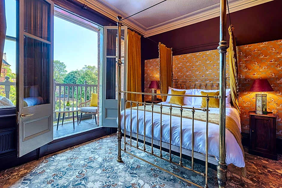 The Double Room with Four Poster Bed at Clementine's Town House Hotel is a non-smoking room that accommodates 2 adults and 1 child. It features a double bed and has a room size of 205 sqft.
