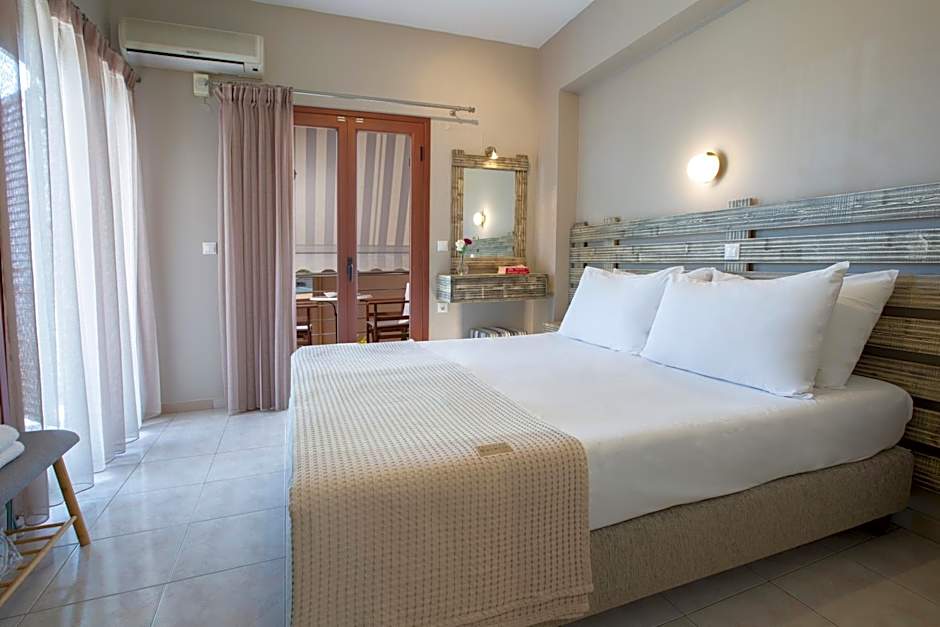 For downtime, an outdoor swimming pool is free and available all season, with all ages welcome. Beach chairs and loungers, a garden, free toiletries, and balconies add small luxuries to the stay. Additional conveniences include free parking, free Wifi, air conditioning, a bar, private entrance, and a terrace.