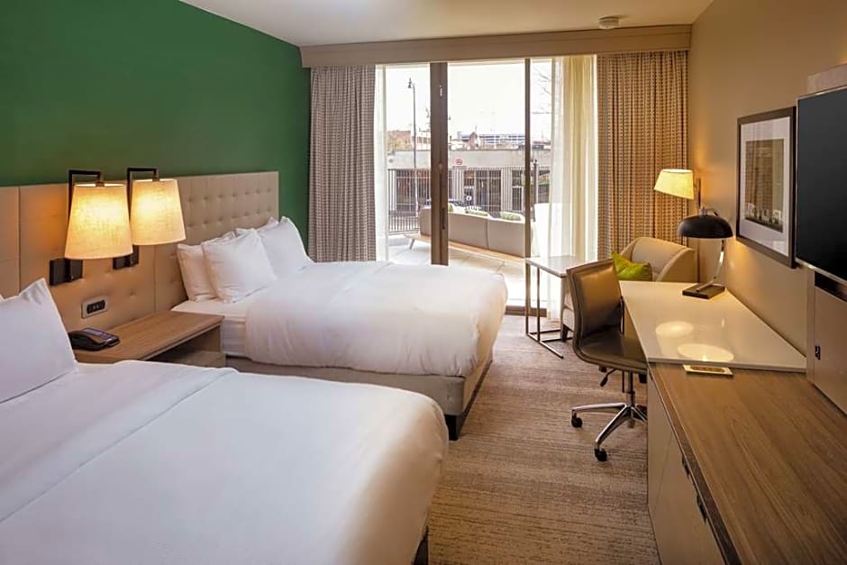 The Hilton Birmingham Downtown at UAB offers a variety of room types including quadruple rooms with two queen beds, double rooms with a king bed, and mobility accessible rooms with either a king bed or a queen bed. All rooms are non-smoking. The rooms range in size from 377 sqft to 388 sqft and can accommodate 2 adults and 1 child or 4 adults and 3 children.