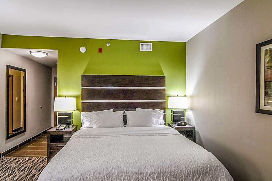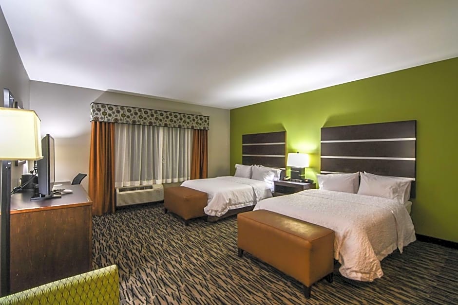 The Hampton Inn Foley offers a variety of rooms including Queen Rooms with Two Queen Beds, a King Room, a Queen Room with Two Queen Beds including disability and hearing accessible options, a King Studio with a Sofa Bed, and a King Room with a Sofa Bed. All rooms are non-smoking. The Queen Rooms and the King Studio can accommodate up to 4 adults and 3 children, while the King Room can accommodate 2 adults and 1 child. The beds available include Queen size beds and King size beds.