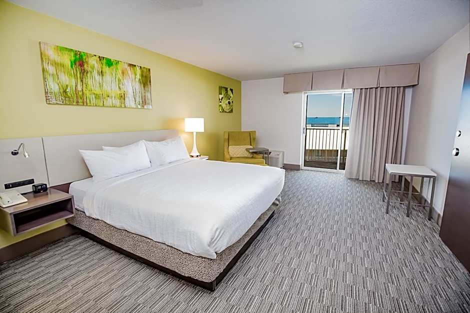 This room includes a private balcony with an ocean view and free Wi-Fi access. A flat-screen TV, microwave, and refrigerator are also included.