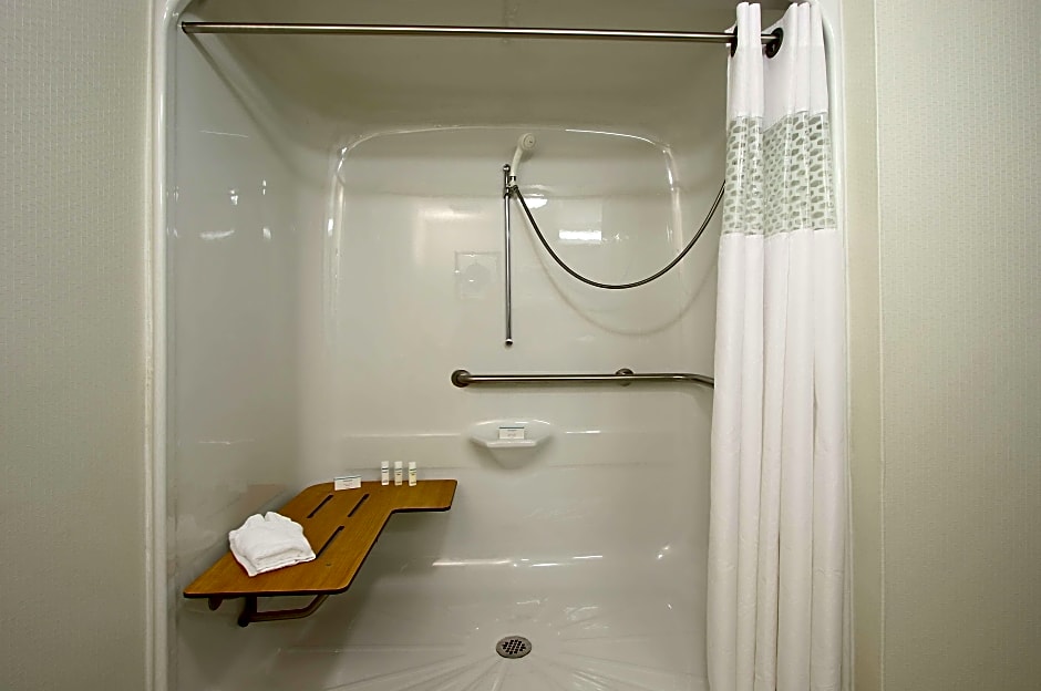 Free WiFi, walk-in shower, microwave, mini-refrigerator, desk, 32-inch LCD flat-screen HDTV. Welcome to this comfortable guest room with a king-sized bed. Prepare some food in the small kitchen area, featuring a microwave and mini-refrigerator. Sit back and watch premium HD channels on the 32-inch LCD TV. Surf the web using our free WiFi access, or use it to get some work done in comfort at the desk with an ergonomic chair. Refresh in the bathroom, complete with a walk-in shower and fluffy towels. Settle down for the night in the clean and fresh Hampton bed®. Other amenities in this room include a coffee machine, night lights, and bath products.