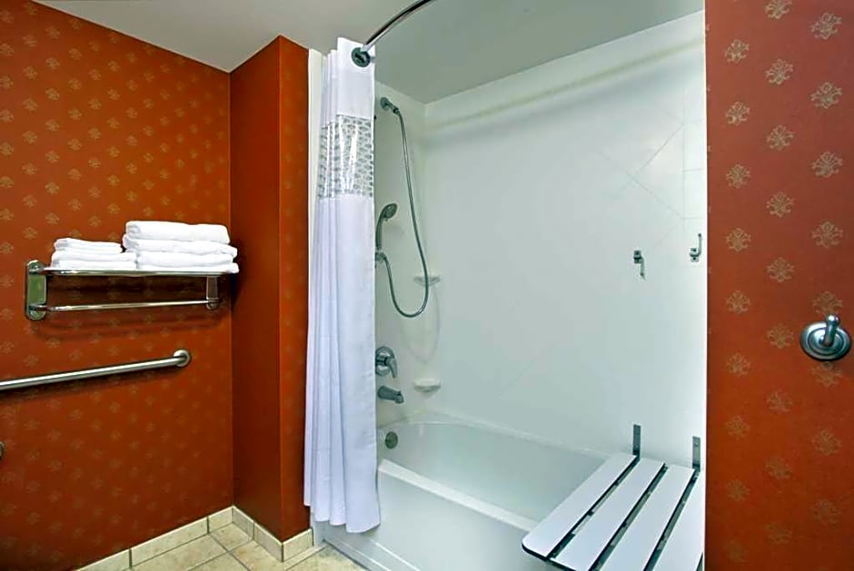 This mobility and hearing accessible, non-smoking studio suite features one king-sized bed, roll-in shower and has visual alarm and notification devices for the doorbell or door knock and incoming phone calls. Welcome to this comfortable guest room with a king-sized bed and sofa bed. Prepare some food in the small kitchen area, featuring a microwave and mini-refrigerator. Sit back and watch premium HD channels on the 32-inch LCD TV. Surf the web using our free WiFi access, or use it to get some work done in comfort at the desk with an ergonomic chair. Any corresponding photo may not reflect the specific accessible room type or room feature.