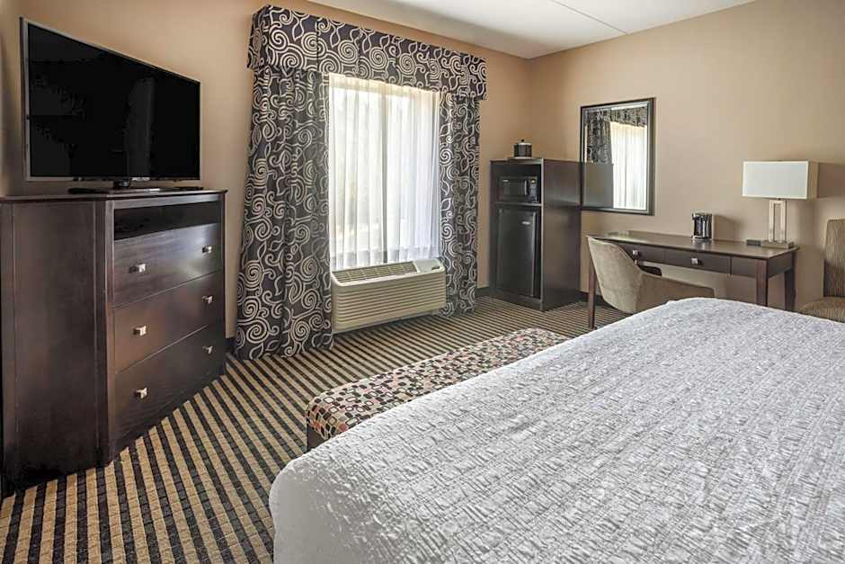 32-inch HDTV, work space, coffeemaker, free WiFi access Unwind in this guest room which offers one king-sized clean and fresh Hampton bed® and a 32-inch HDTV with premium channels. Refresh in the bathroom with a WaterPik showerhead and fluffy towels. The curved shower rod provides extra space and light when showering. Work in comfort at the large desk and stay connected with free WiFi access. Additional amenities include a handy coffeemaker.