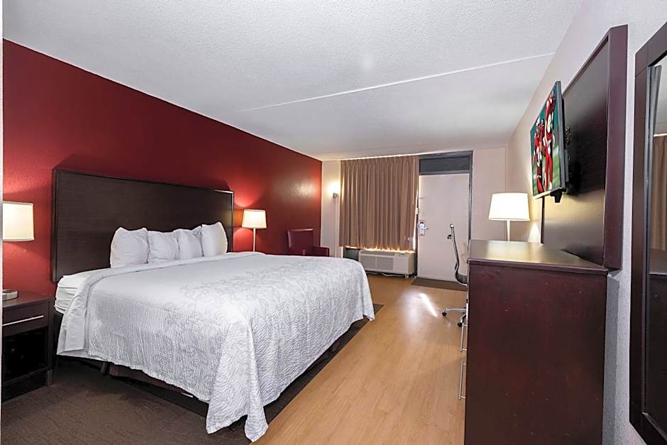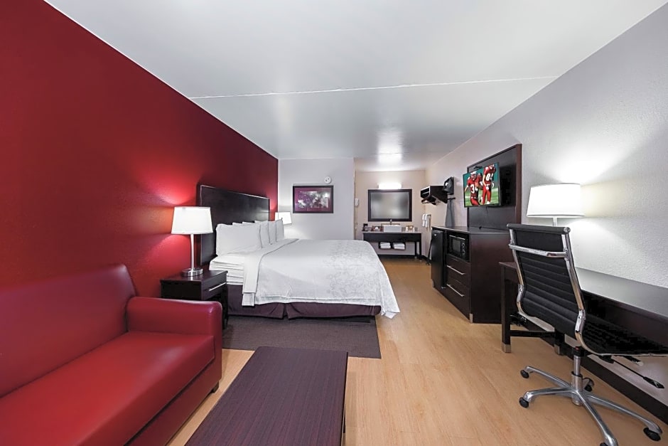 What are the room types available at Red Roof Inn PLUS+ Huntsville – Madison?
