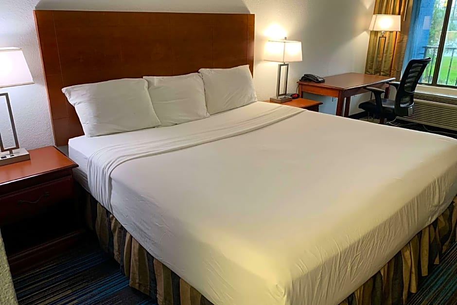 Travelodge by Wyndham Mobile AL offers a King Room with 1 King size bed accommodating up to 3 adults, and a Double Room with Two Double Beds accommodating up to 4 adults. Both room types are non-smoking. The King Room is designed for triple occupancy, while the Double Room is suitable for quadruple occupancy.