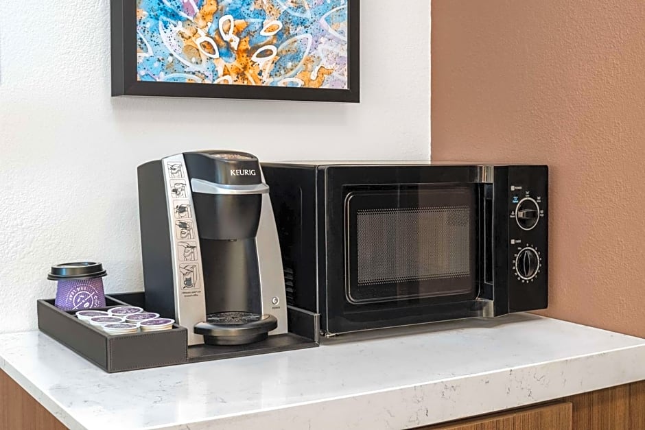 Complimentary WiFi, HDTV, desk and ergonomic chair, microwave, refrigerator, coffeemaker Unwind in this comfortable and convenient king room, with a range of useful features. Stay entertained with the HDTV, catch up on work at the desk with ergonomic chair and keep in touch with complimentary WiFi. Make use of a range of home comforts, including a microwave, refrigerator and Keurig® coffeemaker. Get a good night's sleep in fresh, white, cozy duvets and crisp linens.