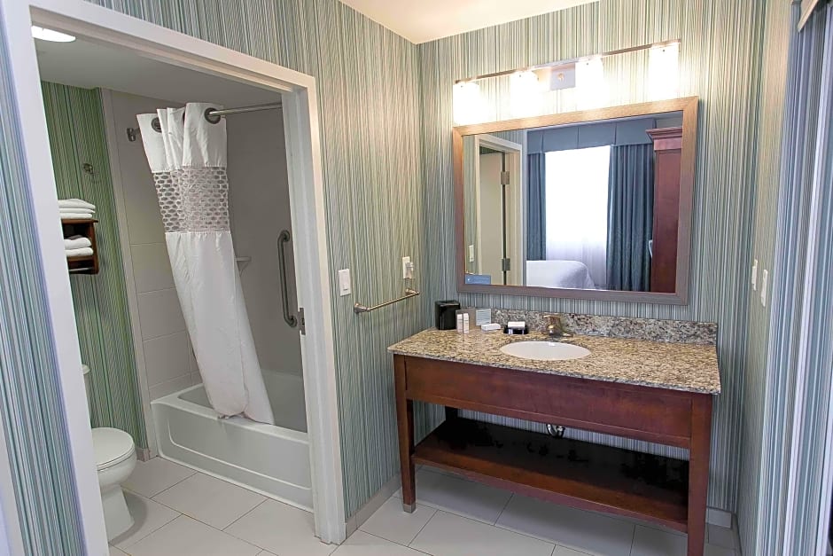 32-inch LCD TV, work desk, coffeemaker, free WiFi access Enjoy a restful stay in this spacious room with a clean and fresh Hampton bed®, comfortable soft seating and a 32-inch TV with HD channels. Additional amenities include a large work desk, a coffeemaker and free WiFi access to allow you to stay connected when on the road. The bathroom contains plush towels and a shower featuring a curved shower rod for added space and light.