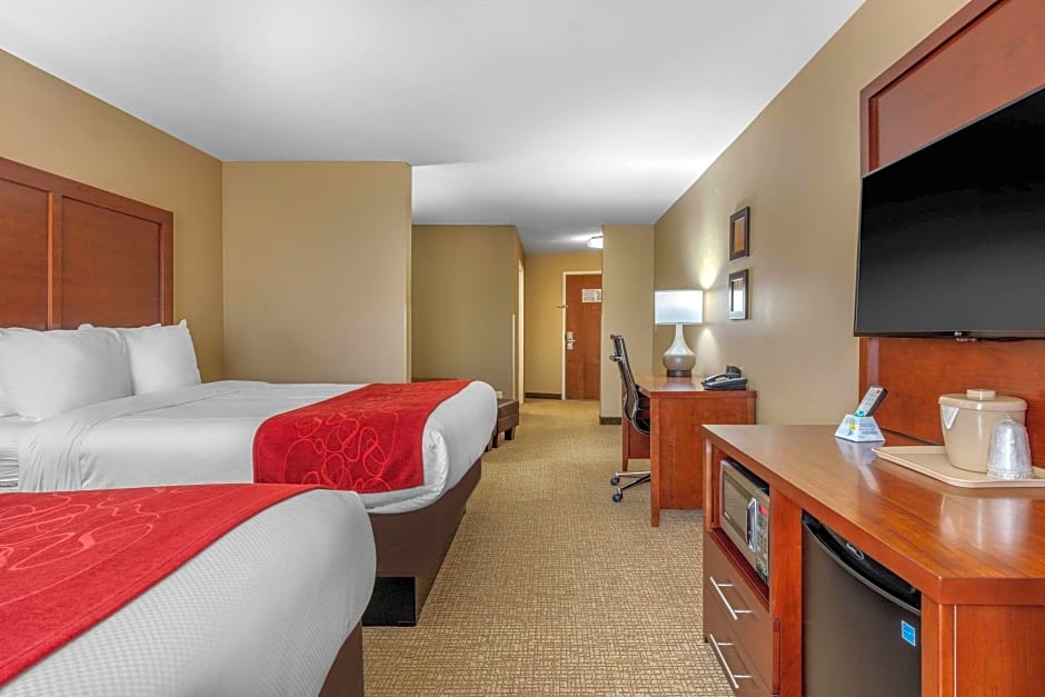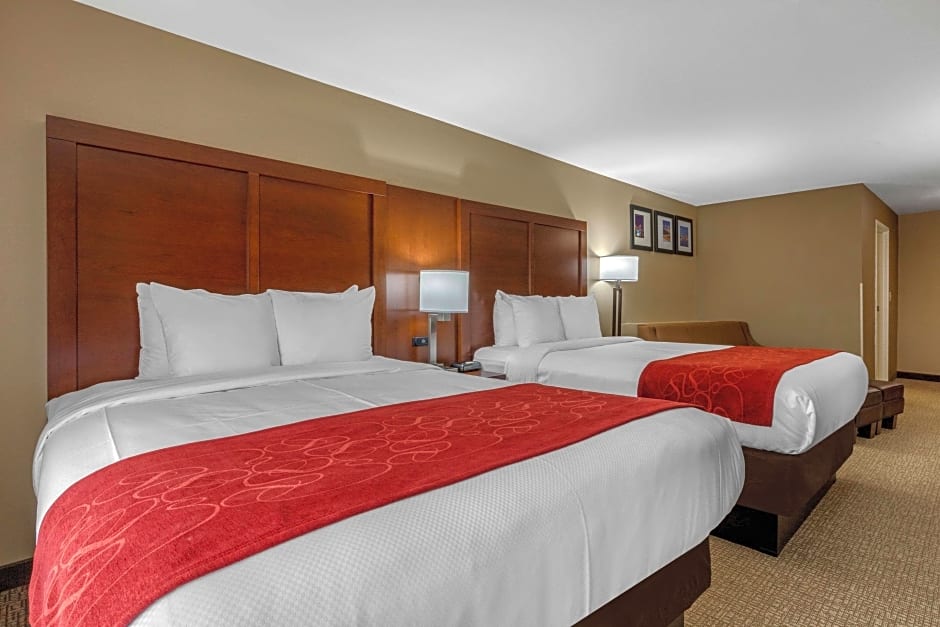 The Comfort Suites Pelham Hoover I-65 offers various types of rooms including King Suite, Queen Suite, and Suite with Two Queen Beds. The rooms are non-smoking and have a size of 258 sqft. The King Suite has a king-size bed and accommodates 4 adults and 3 children. The Queen Suite and Suite with Two Queen Beds both have queen-size beds and a sofa bed, accommodating 5 adults and 4 children.
