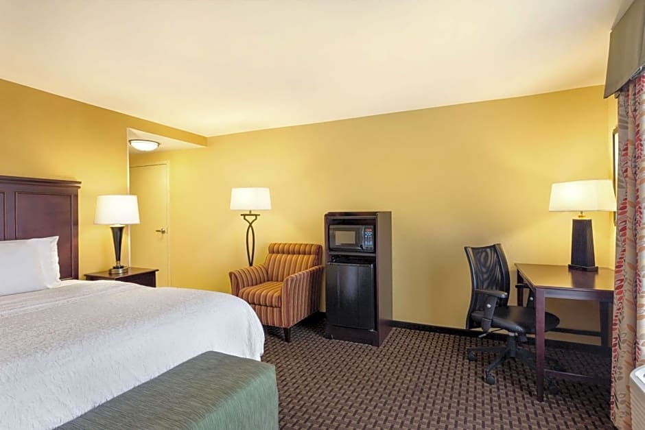 Any corresponding photo may not reflect the specific accessible room type or room feature. This mobility and hearing accessible, non-smoking room features one king-sized bed and an accessible bathtub. The room also has a visual alarm and notification devices for the doorbell or door knock and incoming phone calls. The room features comfortable soft seating, an HDTV and easy to operate alarm clock/radio. The free high-speed internet access will help you stay connected while on the road. If you prefer not to work at the desk, you can use the convenient lapdesk instead. You'll also enjoy the convenience of having a coffeemaker and an iron with ironing board in your room.