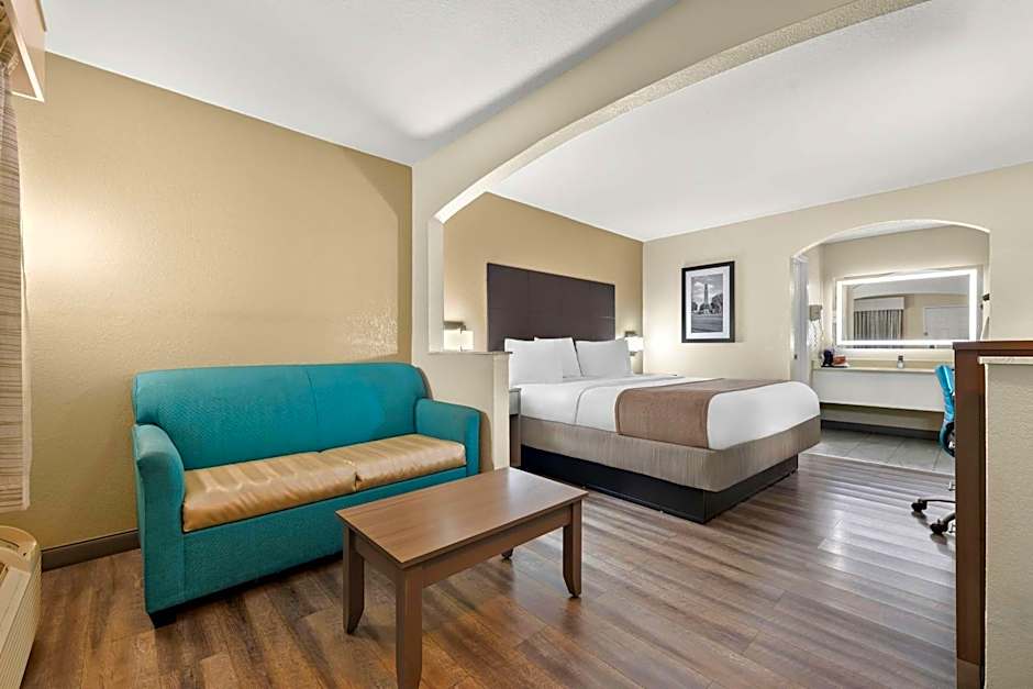 Convenient location for an overnight stay when passing through the area. Close to restaurants, shopping & nightlife. (We recommend Pastor’s Kitchen, Just Love Coffee, & Cravings. Wish we had time to check out more.) Room was very comfortable and appeared clean. Smelled of bleach when we entered which made us happy! Good lighting & numerous places to plug in devices. Easy parking in front of your room.