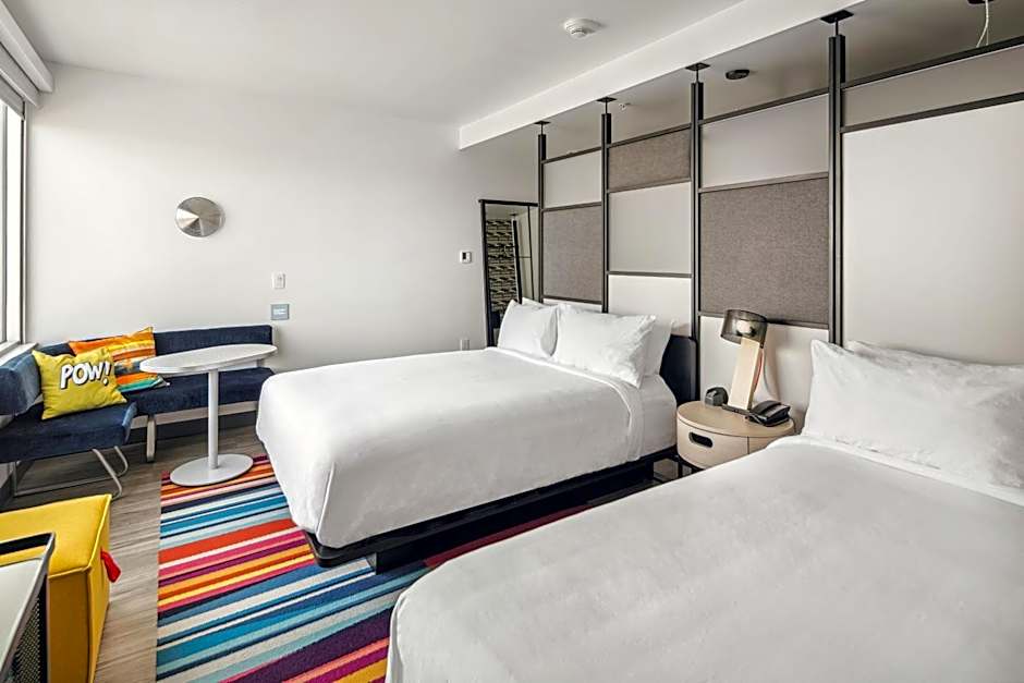 The Aloft Anchorage hotel offers a variety of room types including Queen Rooms with Two Queen Beds, King Rooms, and rooms that are accessible for mobility and hearing needs. All rooms are 280 sqft in size and smoking is not allowed. The Queen Rooms with Two Queen Beds can accommodate up to 4 adults and 3 children, while the King Rooms can accommodate 2 adults and 1 child.