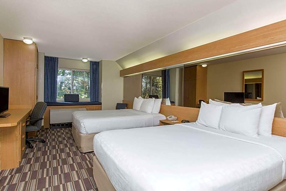 Nice location - quiet and very near the airport. Free shuttle to/from airport. We asked for a room with a step-in shower due to mobility issues but ended up with a tub shower. It was a low-rise tub, so my wife did o.k. with assistance. Breakfast was about average for budget hotels that include a free breakfast.