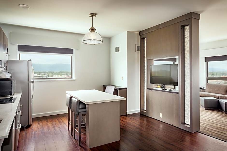 We stayed here at the beginning of our trip to Alaska and at the end of the trip. We picked Hyatt House because of its location and proximity to the airport. We were extremely happy with our stay at Hyatt. The staff was very friendly. The room was clean and spacious, and it is a bonus to have breakfast in the morning.Also the day of our departure at 5 o'clock AM they arranged for a shuttle to take us to the airport and even gave us a little breakfast to go bag ,which I thought was extremely thoughtful. I would definitely stay here again and recommend this hotel to everyone planning a trip to Anchorage.