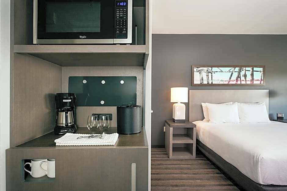 The Hyatt House Anchorage offers several types of rooms including king rooms, king studio suites with a kitchen and sofa bed, one-bedroom suites with either two queen beds or a king bed and sofa bed, and a king suite with a bathtub and disability access. All rooms are non-smoking and vary in size from 312 sqft to 710 sqft. The rooms can accommodate anywhere from 2 to 6 adults, with additional space for children.