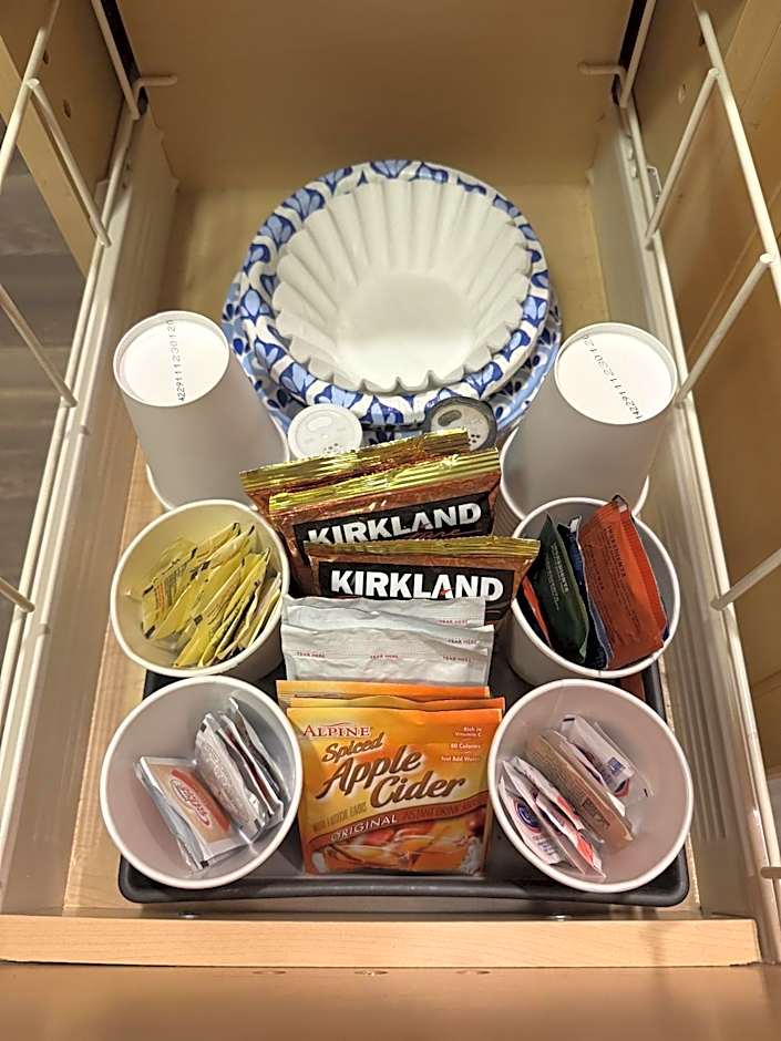 This spacious suite features a microwave, refrigerator, and tea- and coffee-making facilities.
