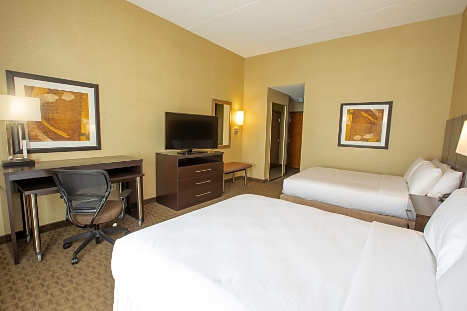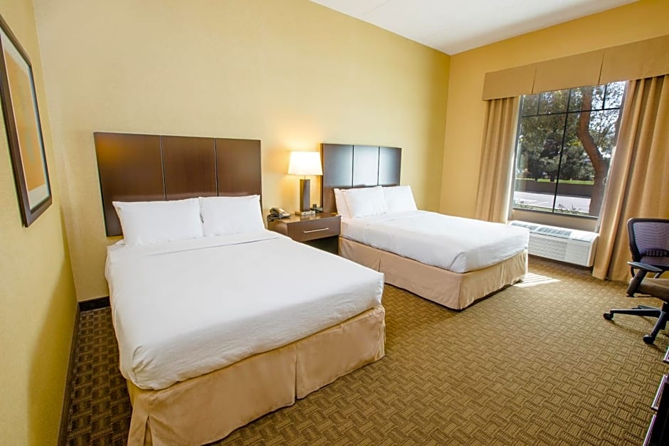 The Holiday Inn Phoenix/Chandler offers a variety of room types including Queen Rooms with Two Queen Beds, King Rooms, and Rooms with Disability Access. All rooms are non-smoking and have a size of 366 sqft. The Queen Rooms with Two Queen Beds can accommodate 4 adults and 3 children, while the King Rooms and Rooms with Disability Access accommodate 2 adults and 1 child. The beds in the rooms range from 1 King size bed to 2 Queen size beds.