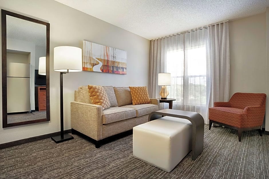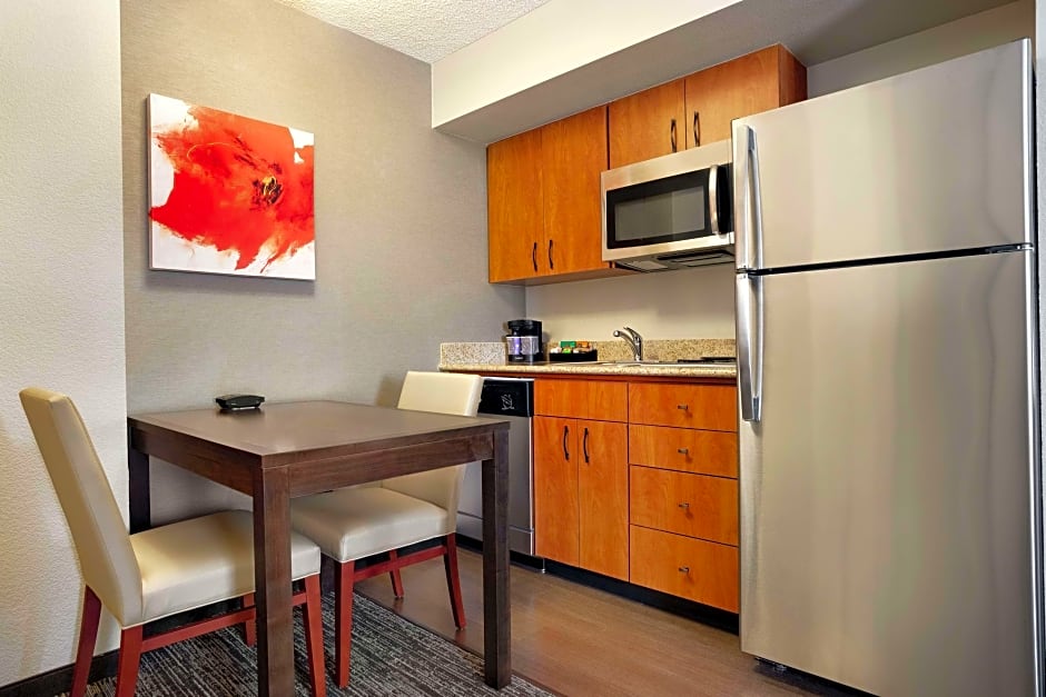 This mobility and hearing accessible non-smoking one bedroom suite features one king-sized bed, and an accessible bathtub. This suite also has a visual alarm and notification devices for the doorbell or door knock and incoming telephone calls. This suite has a kitchen, built to lower scale, is fully equipped down to utensils, and includes a full-sized refrigerator, microwave, dishwasher and twin burner stove. The dining area can easily double as workspace. This suite provides a private bedroom with a HDTV and a separate living area features a full-sized sofa bed, chair and HDTV. All of our suites keep you connected with complimentary high-speed internet access, telephone, and alarm clock with MP3 player capabilities and pre-set local radio stations. Any corresponding photo may not reflect the specific accessible room type or room feature.