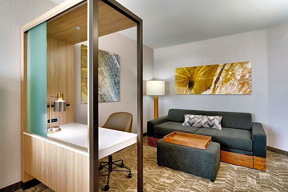 At the SpringHill Suites by Marriott Cottonwood, guests have the option of staying in a King Suite with Trundle Bed, a King Suite with Trundle Bed - Hearing Accessible, a Suite with Two Queen Trundle Beds, or a Queen Suite with Trundle Bed - Hearing Accessible. All rooms are suites, measure 301 sqft in size, are non-smoking, and can accommodate either 3 adults or 5 adults. The King Suites have 1 King size bed, while the Suites with Two Queen Trundle Beds and Queen Suites have 2 Queen size beds.