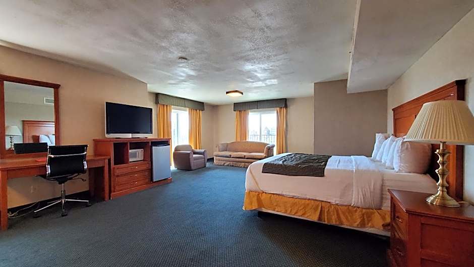 Ramada by Wyndham Flagstaff East offers a variety of room types. These include studio suites with 2 queen beds and 1 king bed, twin rooms with 2 queen beds, king rooms, king rooms with disability access, queen rooms with two queen beds and mobility access, and one-bedroom suites with 3 queen beds. All rooms are non-smoking and have different occupancy limits ranging from 2 adults and 1 child to 6 adults and 4 children. The room sizes are either 280 sqft or 581 sqft.
