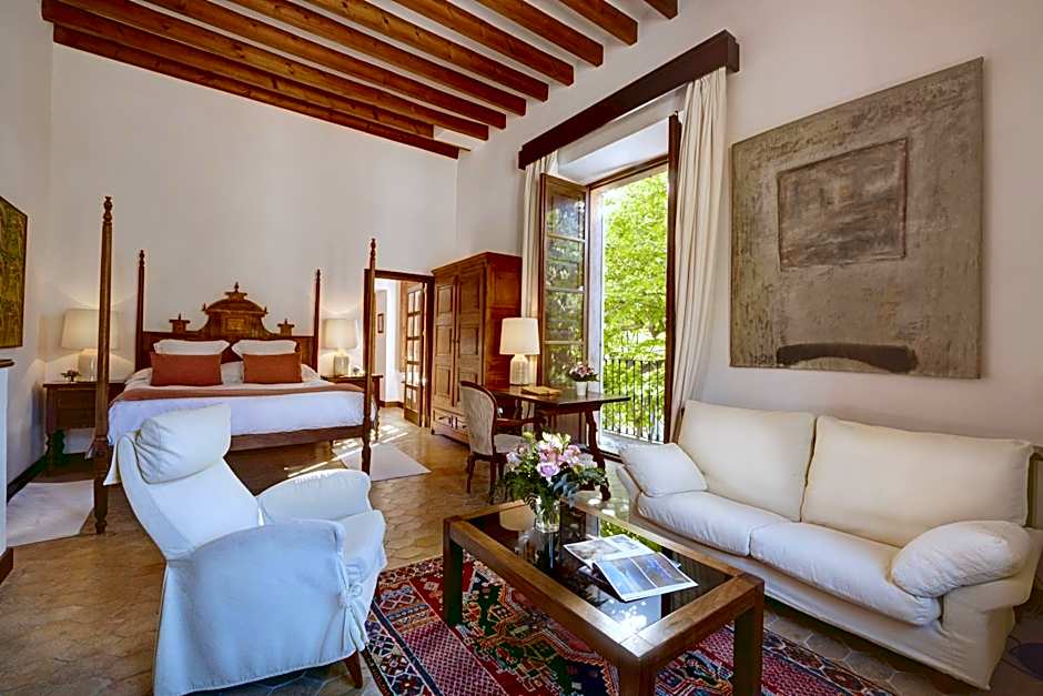 This comfortable and elegant room is more spacious and features Majorcan-style furniture, garden views and in most cases, 1 four-post bed. It has a lounge area with sofa and comes with free Wi-Fi, a safe, plasma TV with DVD player, iPod dock and mini-bar. A buffet breakfast is included in this room rate.