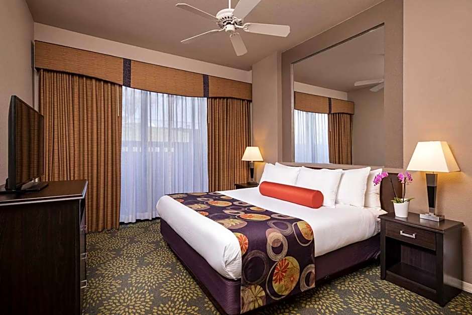 Dive into adventure at the resort's exhilarating water park (for an extra charge) or lounge in the outdoor swimming pool while soaking up the glorious Arizona sun. For those looking to unwind, indulge in the spa services or take a dip in the rejuvenating spa tub. Enjoy delightful meals at the on-site restaurant or sip on cocktails at the bar, all while enjoying live music performances (extra charge). And if you're feeling active, there are complimentary tennis courts and a nearby golf course that will keep you swinging into a perfect vacation mood!